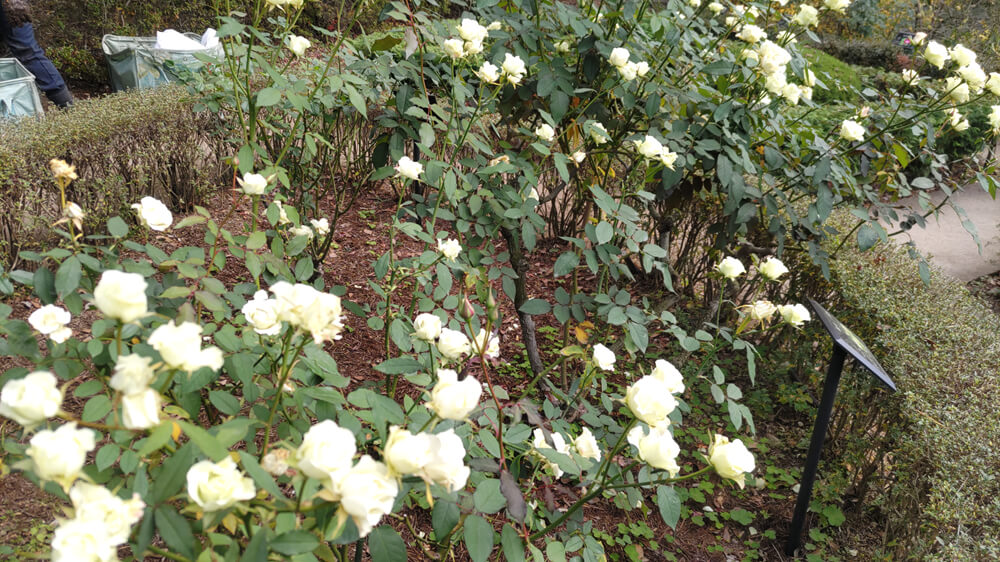 バラの季節と言えば5~6月をイメージするが、ここには秋咲きのバラも多数植えられていて、