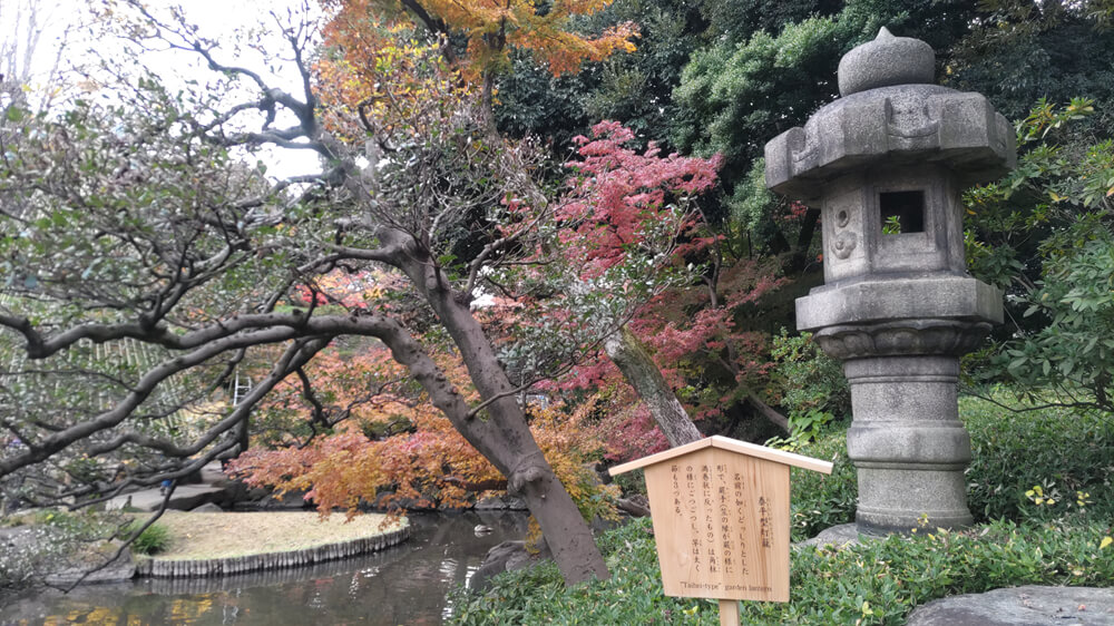 木々の間のあちらこちらに、雪見灯籠をはじめとするいくつもの大きな灯籠が置かれているのが特徴だ。