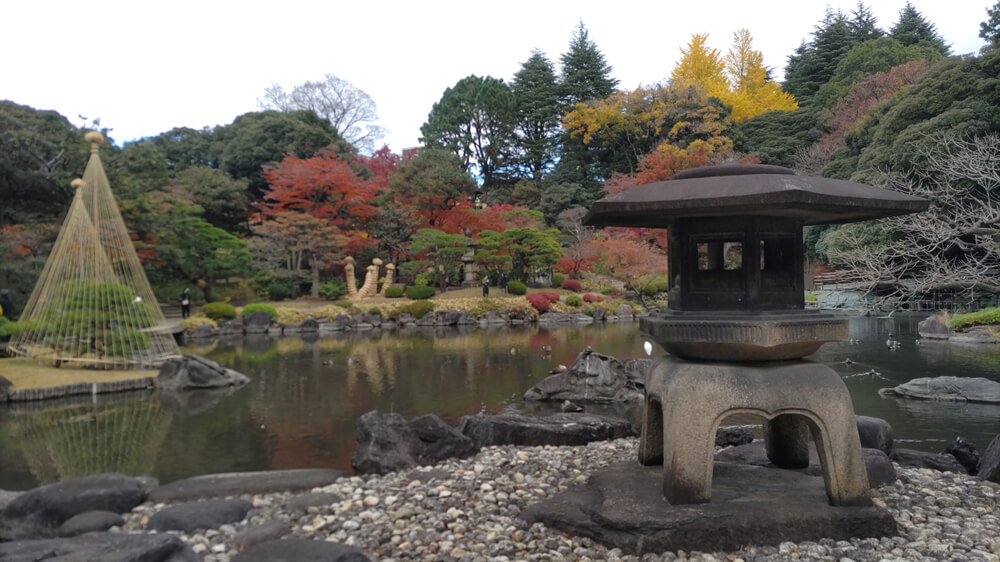 和風庭園は、心字池を中心にしてたくさんの木々を周辺に配置した作りで、