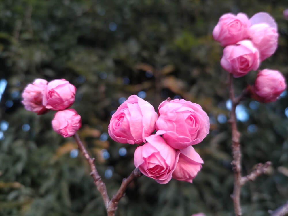 5枚の花弁の定番っぽい形の花もあれば、ボリュームのある八重咲きの花、そして枝垂れ梅も時々ある。