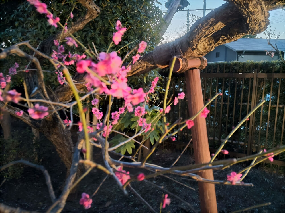 昼にじっくり見る梅も、夜のほのかな灯りでどこからともなく漂ってくる梅の芳香も、
