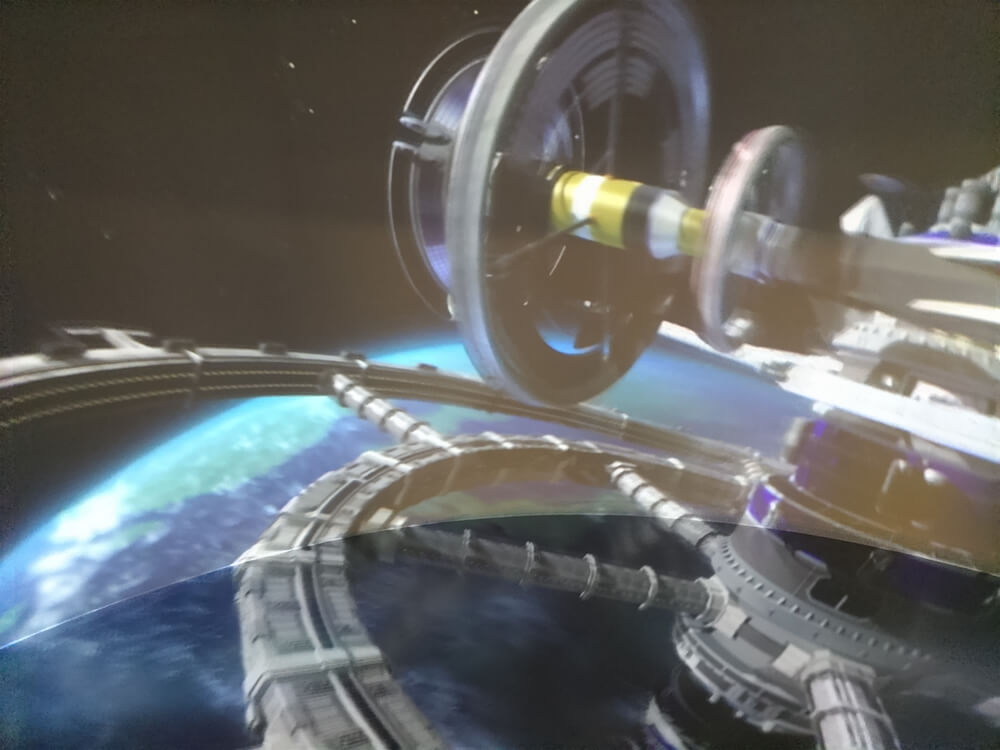 「フロンティアシアター」という映像コーナーでは、未来の宇宙開発がこうなっているかもしれない・・・というSF的なイメージが迫力ある立体映像で流れてくる。