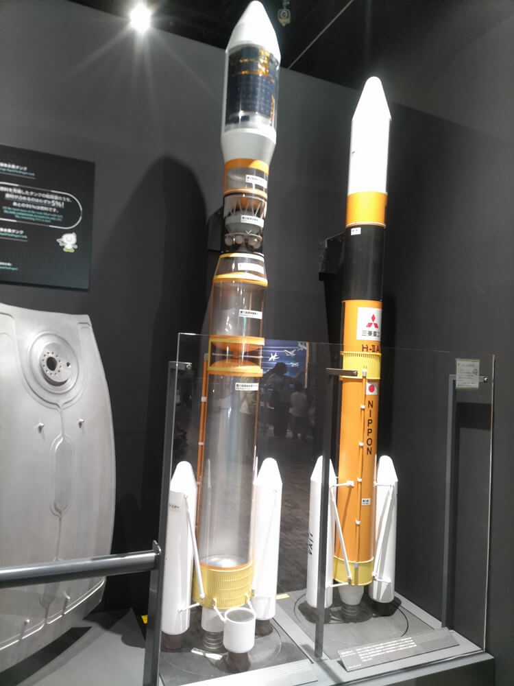ロケットの模型も並べられており、ロケットの燃料の種類、ロケットが宇宙に打ち上げられる仕組みなどが解説されている。
