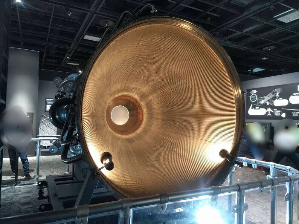 フロアの中心に巨大なロケットエンジンの実物が2基並んで展示されているのが大迫力だ。