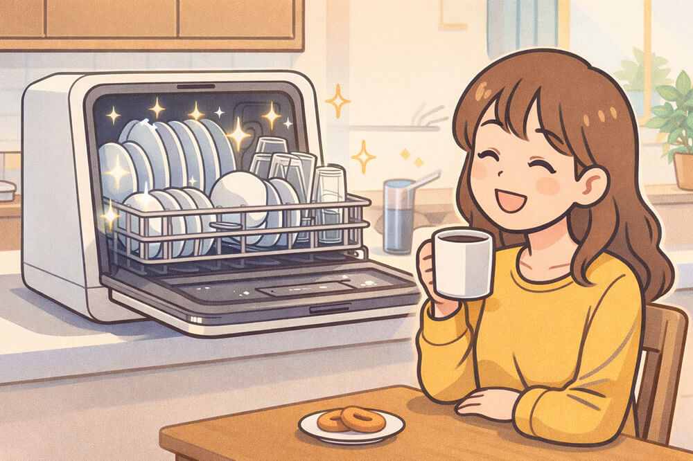 朝、食洗機をスタートして出勤したら、夜に帰ってきて、乾いた食器をそのまま夕飯に使える。