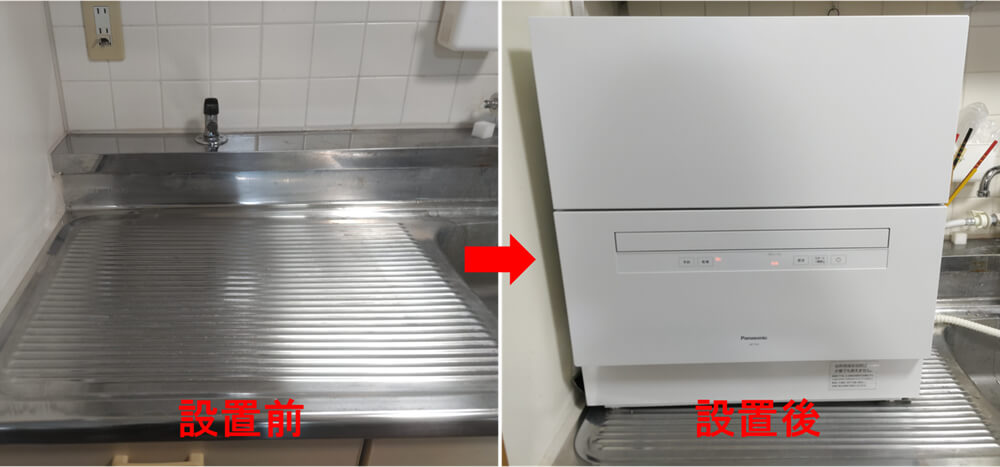 我が家のキッチン(シンク横)について、食洗機を設置しない状態と設置した状態を見比べたものだ。
