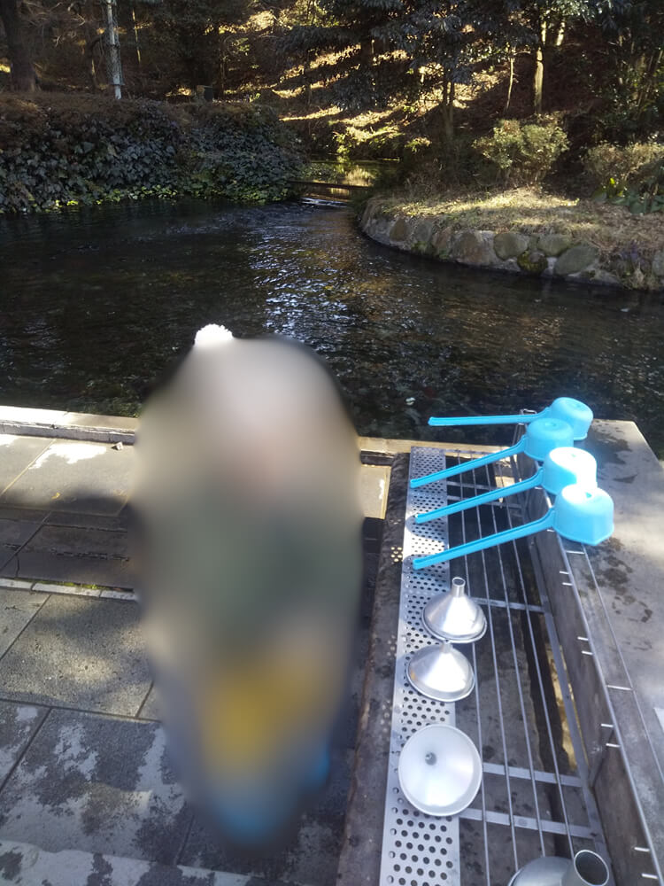 水源の水は自由に汲んでいくことができる(そのまま飲める)。ペットボトルも販売されているが、自分で何か水を入れる容器を持参するのがオススメだ!