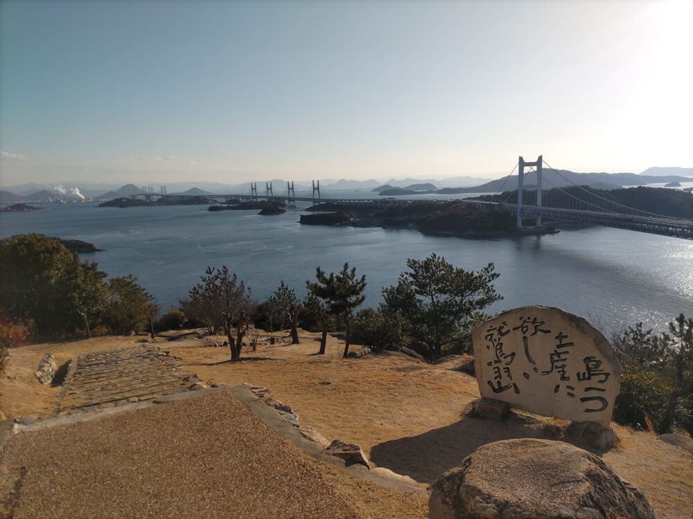 瀬戸内海の青い海や連なる島々が生み出す美しい景観と、瀬戸大橋の壮麗な姿を一望のもとに眺められる場所だ。