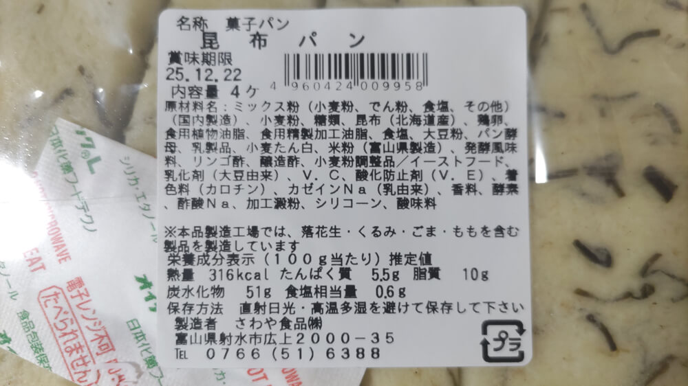 富山県のシルエットを背景に「富山の昆布パン」という極めて素直なネーミングが書かれたパッケージが、