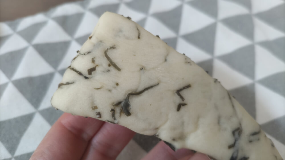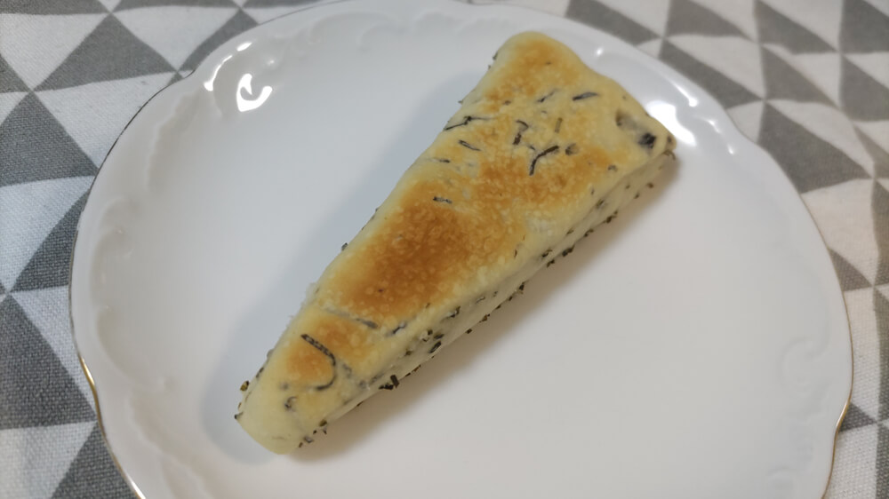 ビジュアルがもう昆布感満載で、白い生地にたくさんの切り昆布が練り込まれているのが分かる。